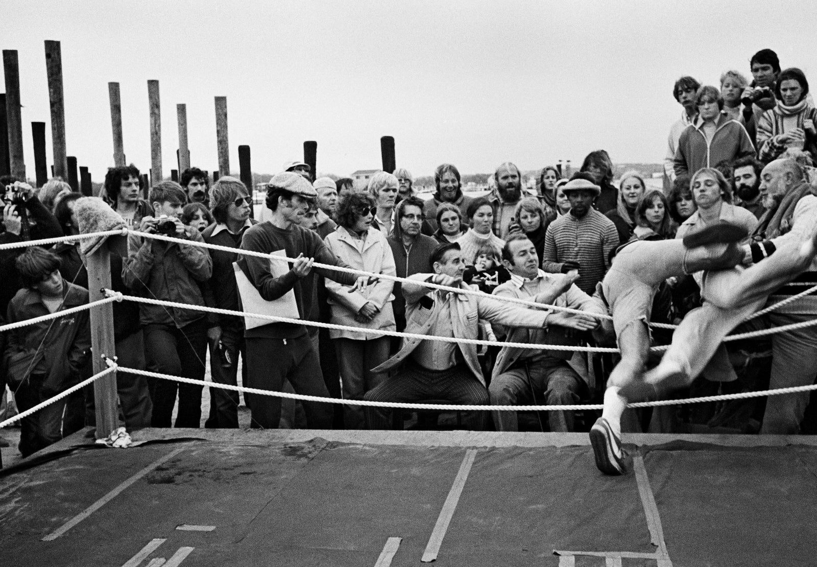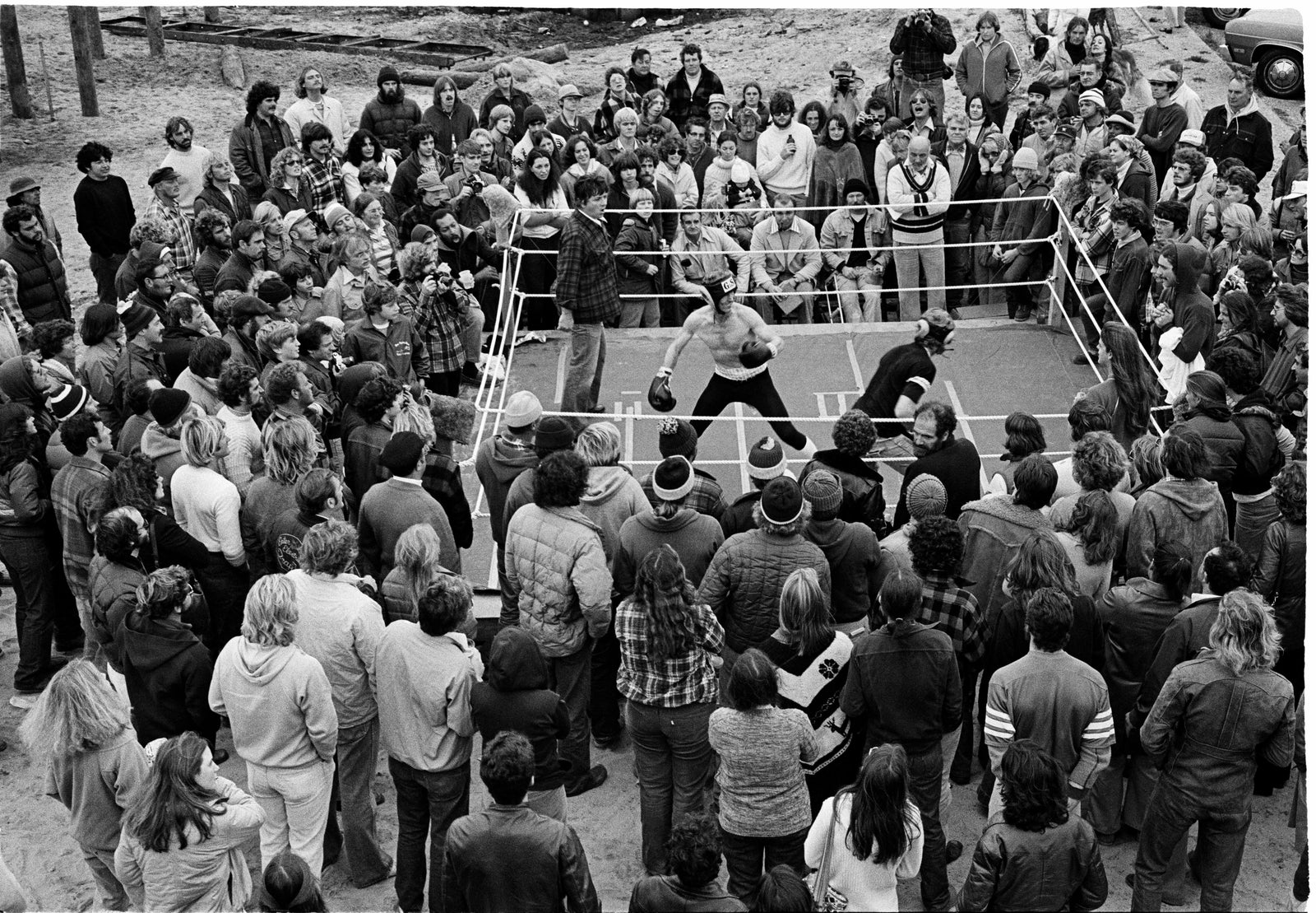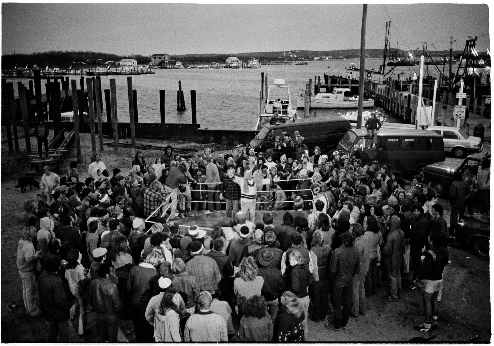 November 5th, 1977. George Watson, owner of The Dock, arranged an amateur boxing event for the local “tough guys” to lace-up, get in the ring and show what they were really made of. A ring was erected in the parking lot of the bar. George’s brother, fashion photographer Tom Watson, captured the event on three rolls of 35mm film. Why hasn’t there been another Dock Fights? “To say the least it was volatile,” answers George. So, what happened that night after Tom ran out of film? That, they say, is the stuff of legend.